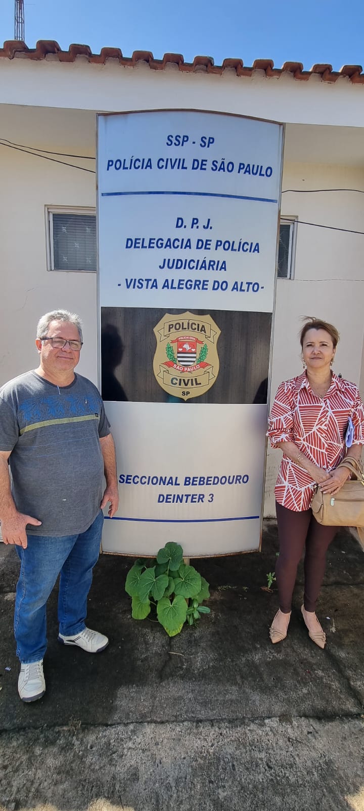A presidenta do Sinpol, Fatima Aparecida Silva, desta vez acompanhada do Diretor Joel Martins, em continuidade às visitas na região, esteve na Seccional de Bebedouro e nas cidades de Taiuva, Taiaçu, Pirangi e Vista Alegre do Alto para se inteirar dos problemas que os policiais estão enfrentando nas suas atividades diárias.